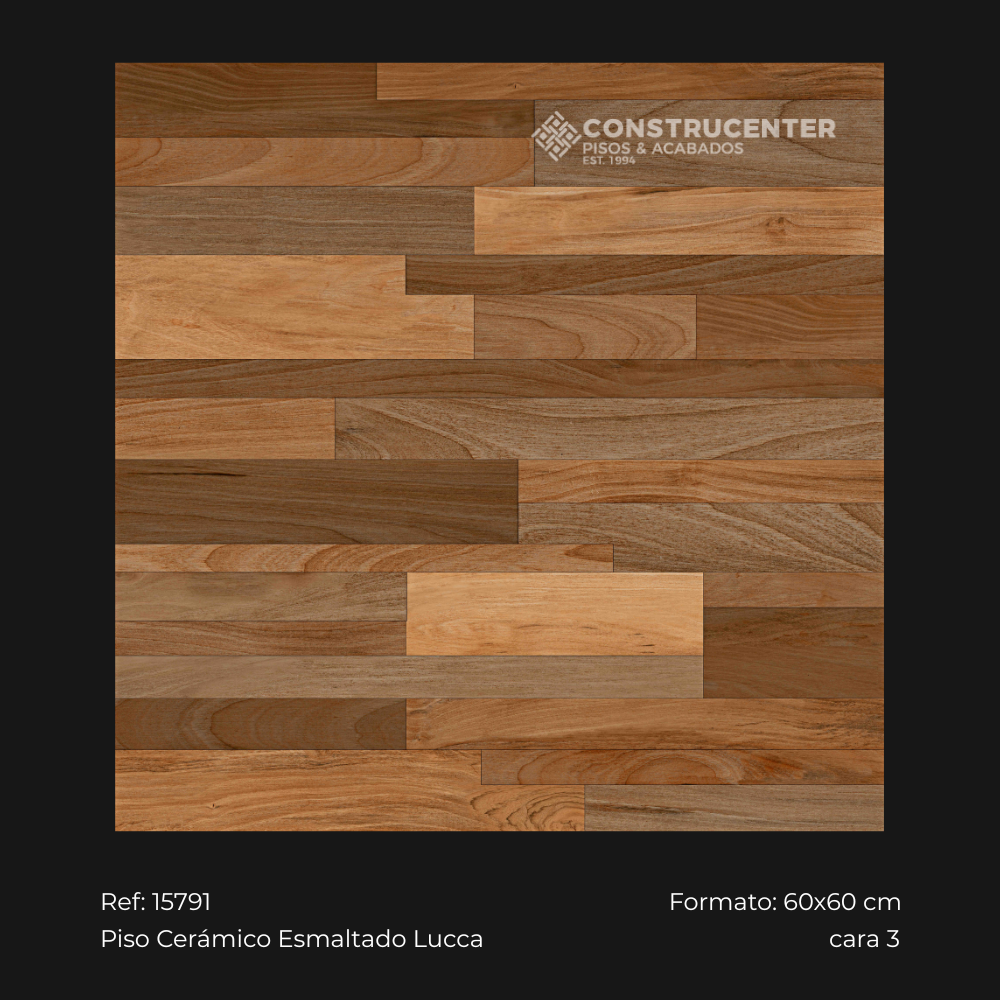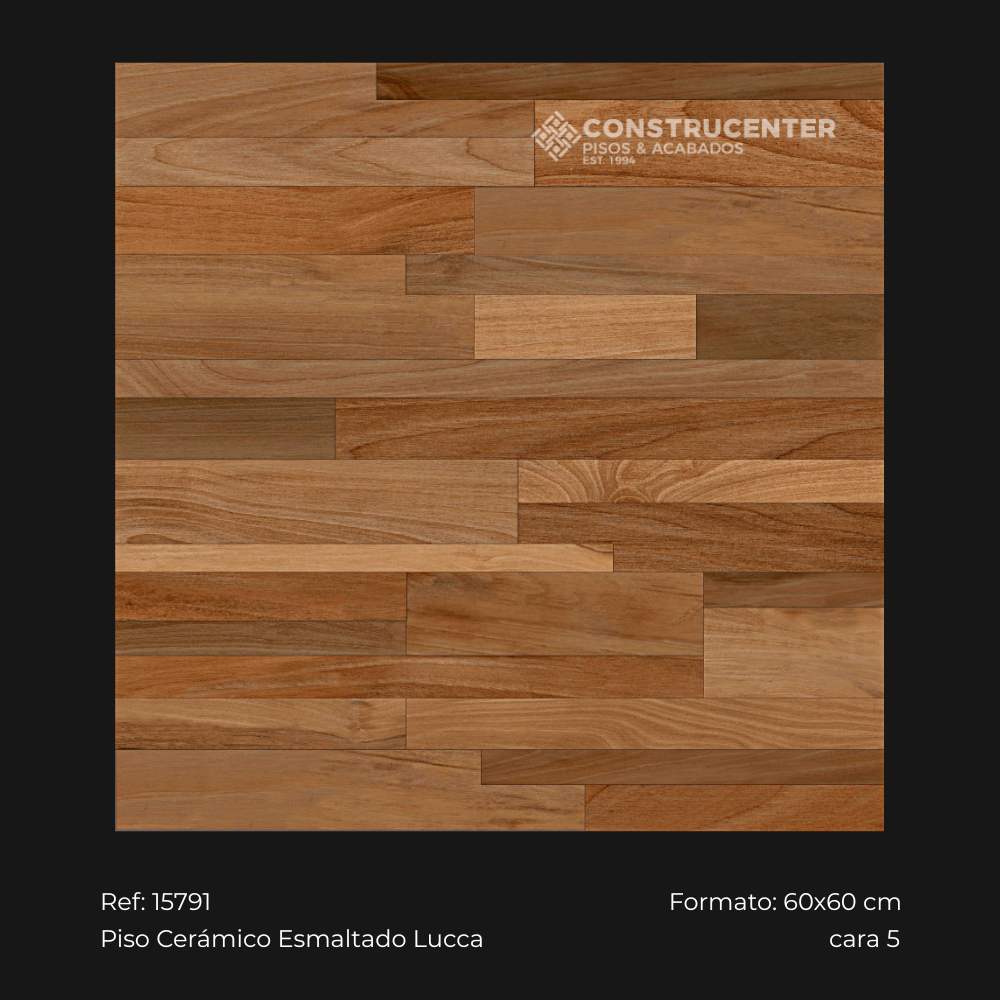 Si buscas el encanto clásico de la madera con la resistencia de la cerámica, el piso cerámico esmaltado Lucca de 60×60 cm es la elección ideal para tu hogar. Su diseño inspirado en los tradicionales pisos de listones ofrece una apariencia rústica y acogedora, perfecta para crear ambientes modernos con un toque atemporal.